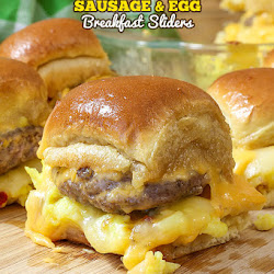 Cheesy Sausage and Egg Breakfast Sliders are a fully loaded perfectly portable hand held breakfast. All of your favorite breakfast fixin's come together with the most amazing and unexpected glaze to create the perfect Brinner (breakfast or dinner). We love these for game day and let me tell you they are amazingly convenient for tailgating! We love these sliders, Chad calls them a 'handful of yum'. Can't beat that endorsement!